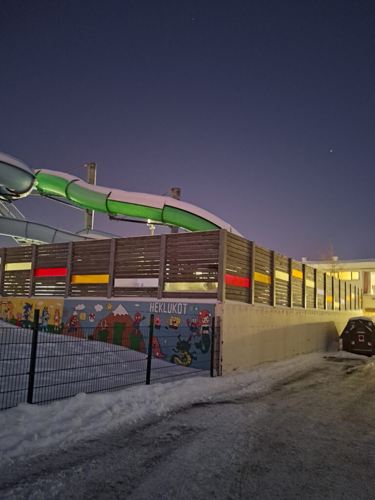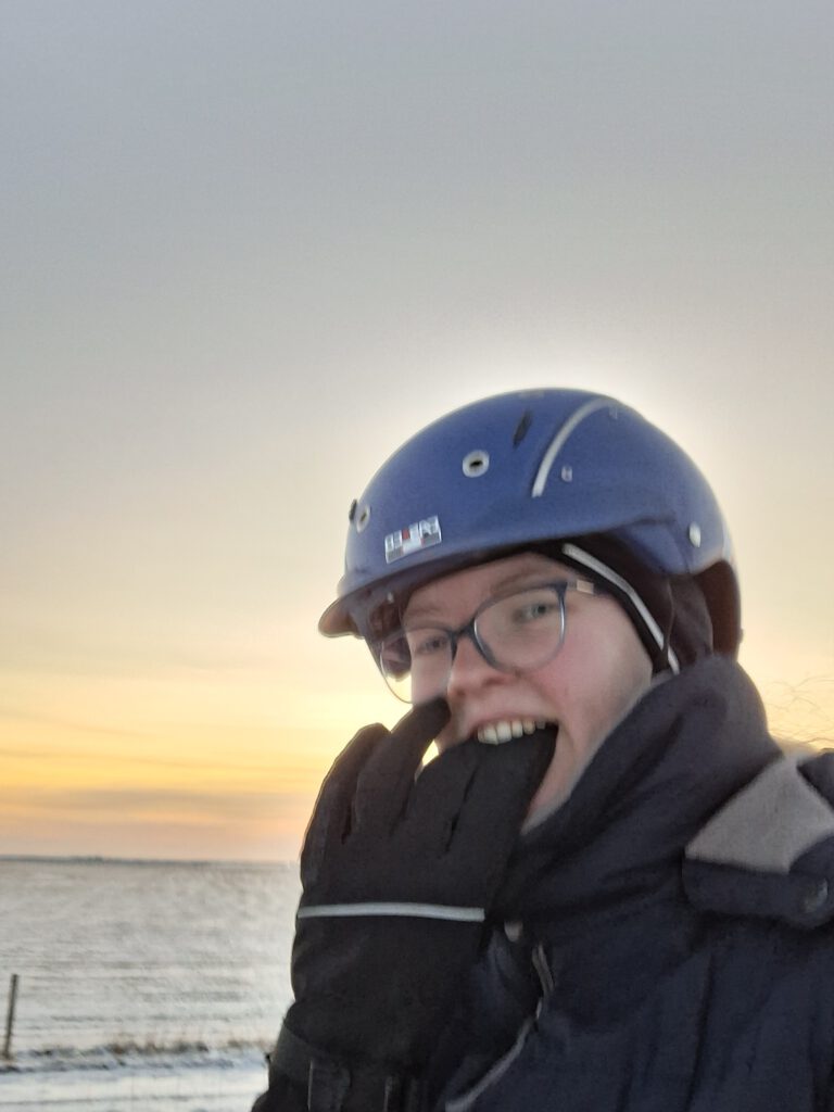 Am nächsten Tag bin ich dann morgens mit dem Vater, den beiden Großen und einer Cousine der beiden ins Schwimmbad gegangen. In Island gibt es nämlich die Regel, dass ein Erwachsener mit maximal zwei Kindern ins Schwimmbad gehen darf, damit die Aufsicht auch gewährleistet ist. Das Wetter war sehr schön, mit Schnee und eine wenig Sonne. Abends habe ich dann noch einen Ausritt gemacht. Es war leider ein bisschen neblig und es näherte sich die Fütterungszeit. Deshalb war Logi auf dem Hinweg nicht wahnsinnig motiviert, und nachdem wir umgedreht sind, ging es dann richtig ab. Aber wir sind wohlbehalten wieder zurückgekommen.